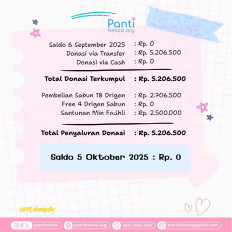 Terimakasih kepada seluruh donatur yang telah menyisihkan sebagian rezekinya melalui pantibekasi.org.