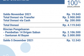 Untuk rincian laporan donasi, dapat dicek melalui Laporan Penerimaan dan Laporan Penyaluran Donasi.