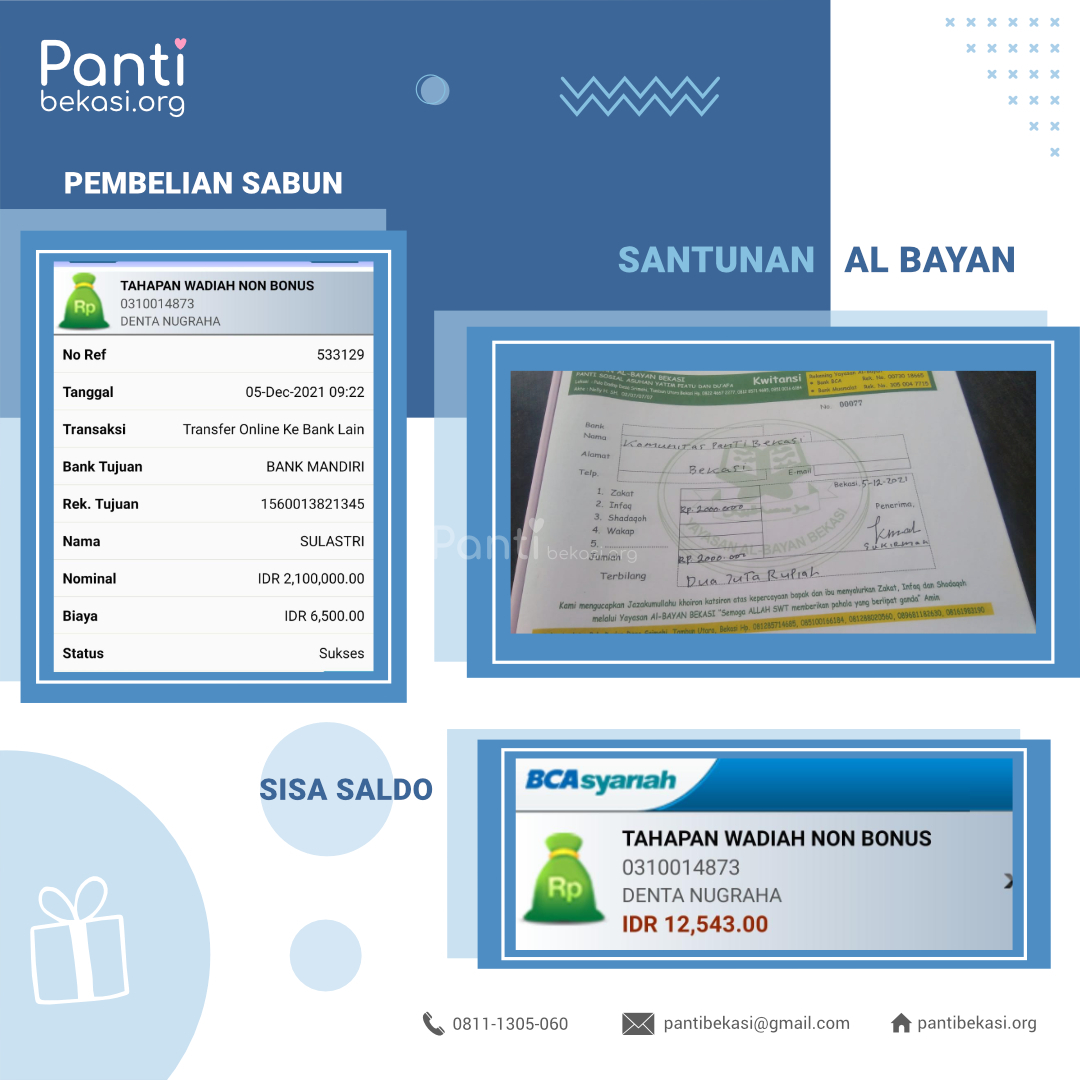 Alhamdulillah Safari Panti bulan DESEMBER 2021 telah kami laksanakan dan berjalan dengan lancar. Terimakasih kepada seluruh donatur yang telah menyisihkan sebagian rezekinya melalui pantibekasi.org.