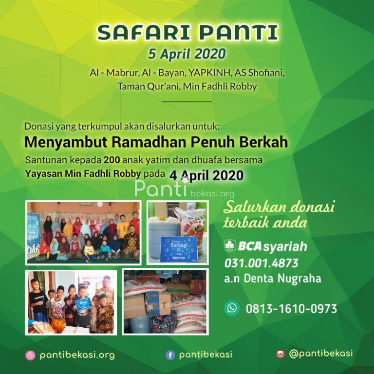Panti Asuhan Min Fadhly Robbi untuk acara berbagi kepada 200 Yatim/Piatu dan Dhuafa dalam menyambut bulan Suci Ramadhan