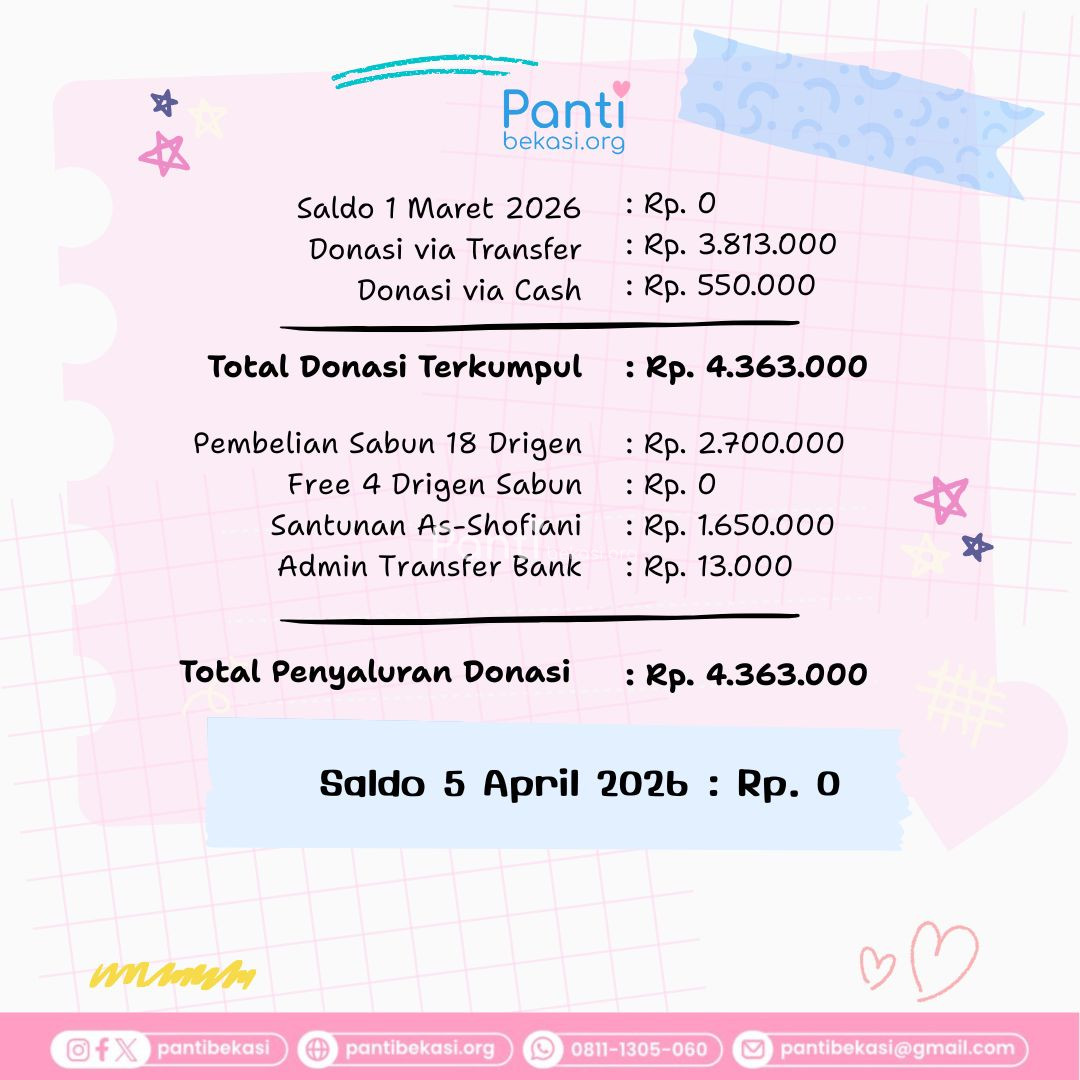 Assalaamu'alaikum, Alhamdulillah Safari Panti bulan April 2026 telah kami laksanakan. Alhamdulillah amanah dari kawan-kawan donatur telah kami sampaikan dan berjalan dengan lancar.