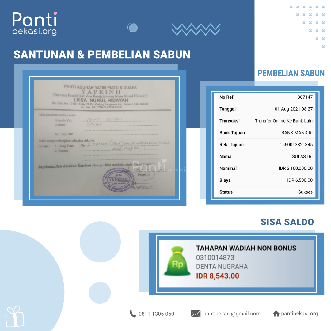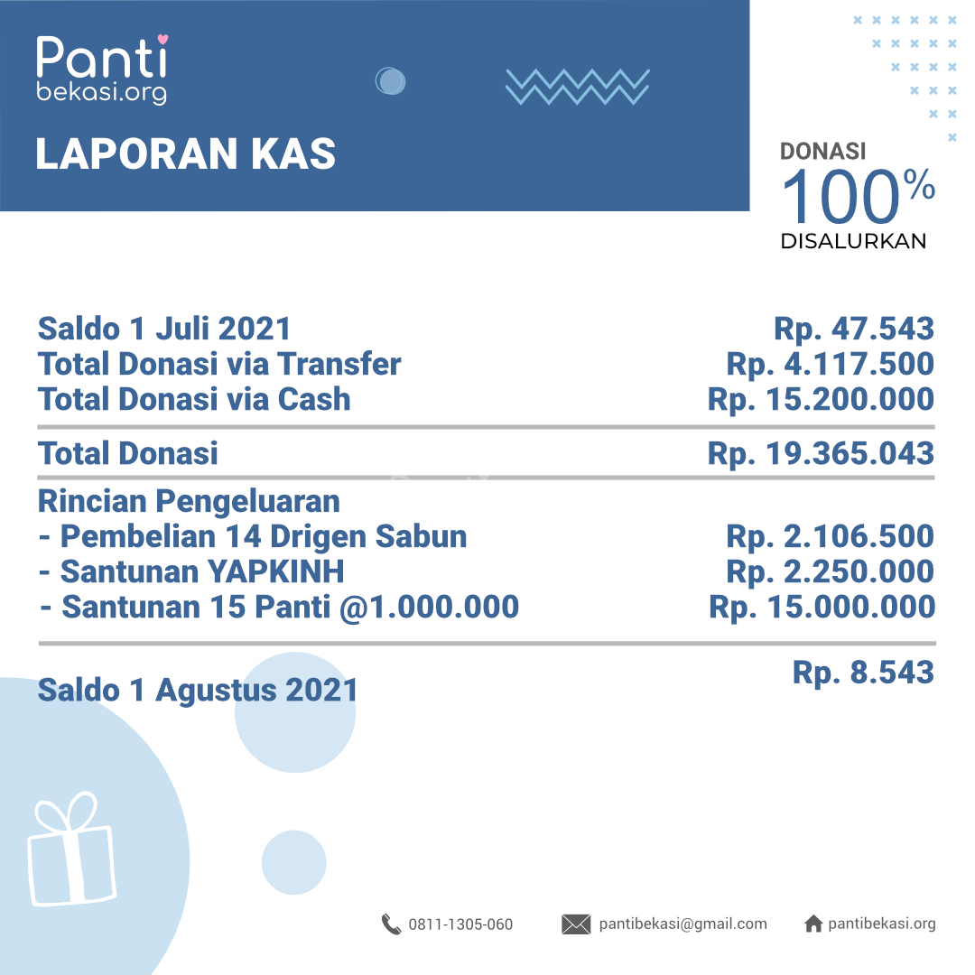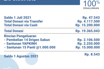 Alhamdulillah Safari Panti bulan Agustus 2021 telah kami laksanakan dan berjalan dengan lancar. Terimakasih kepada seluruh donatur yang telah menyisihkan sebagian rezekinya melalui pantibekasi.org.