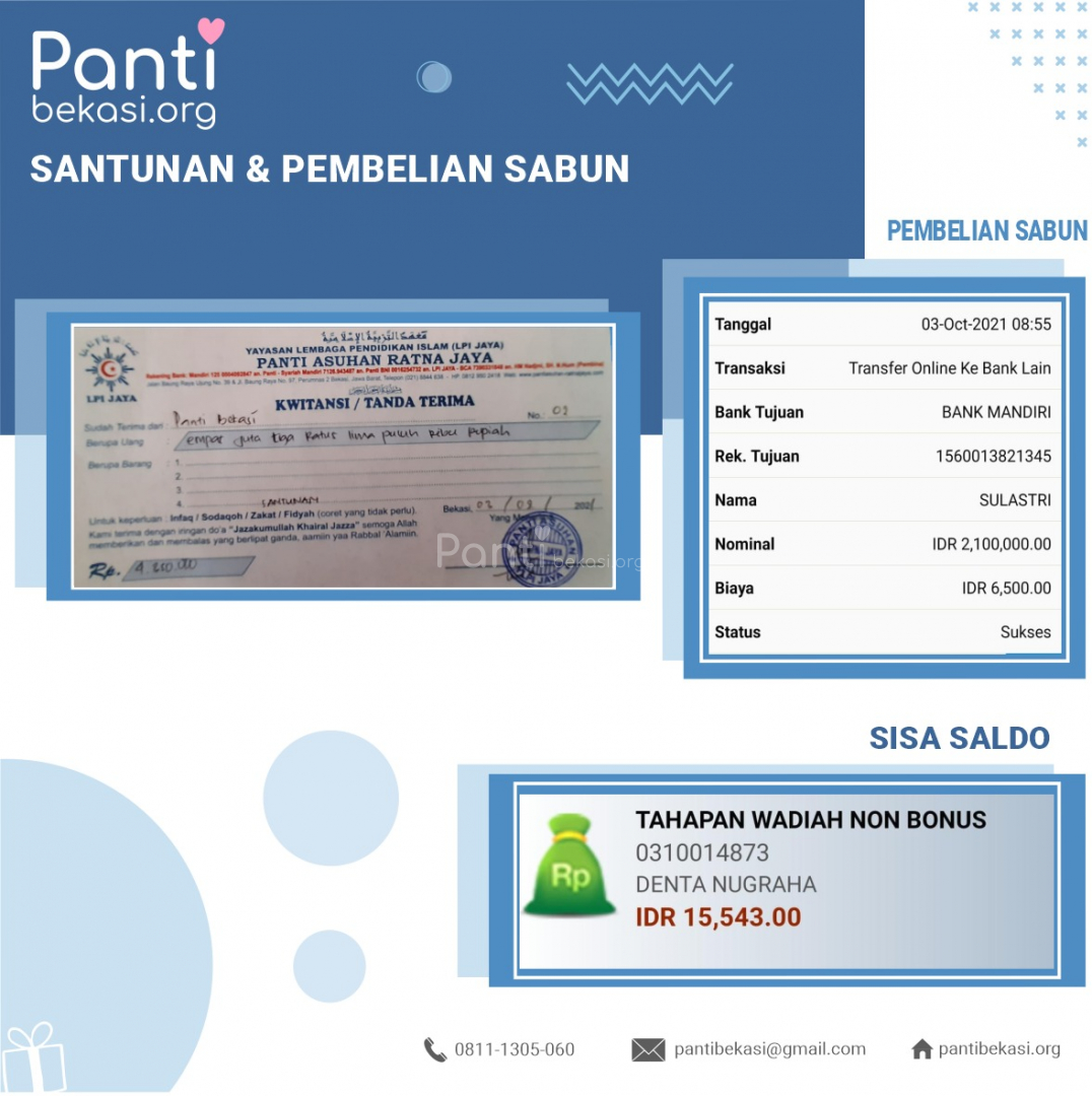 Alhamdulillah Safari Panti bulan Oktober 2021 telah kami laksanakan dan berjalan dengan lancar. Terimakasih kepada seluruh donatur yang telah menyisihkan sebagian rezekinya melalui pantibekasi.org.