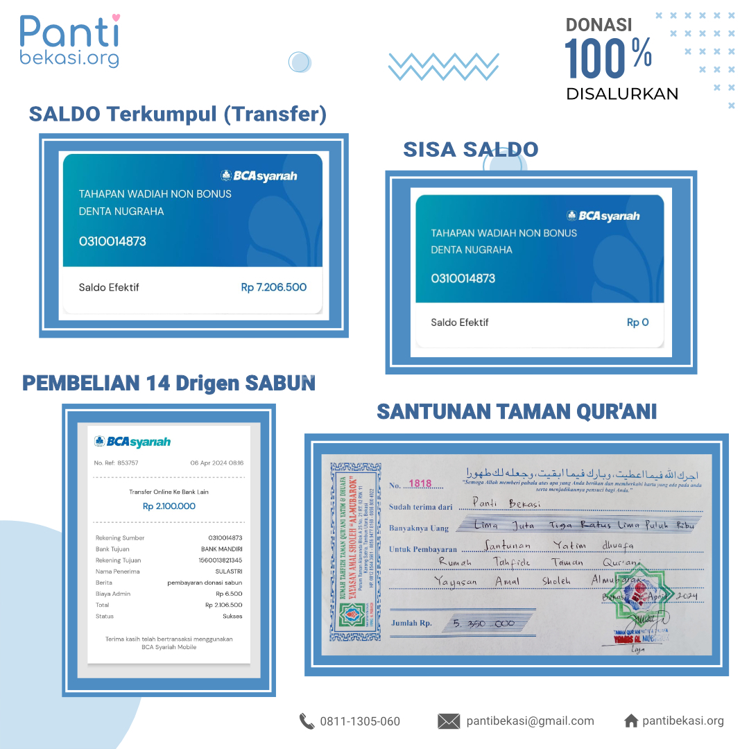 Terimakasih kepada seluruh donatur yang telah menyisihkan sebagian rezekinya melalui pantibekasi.org.