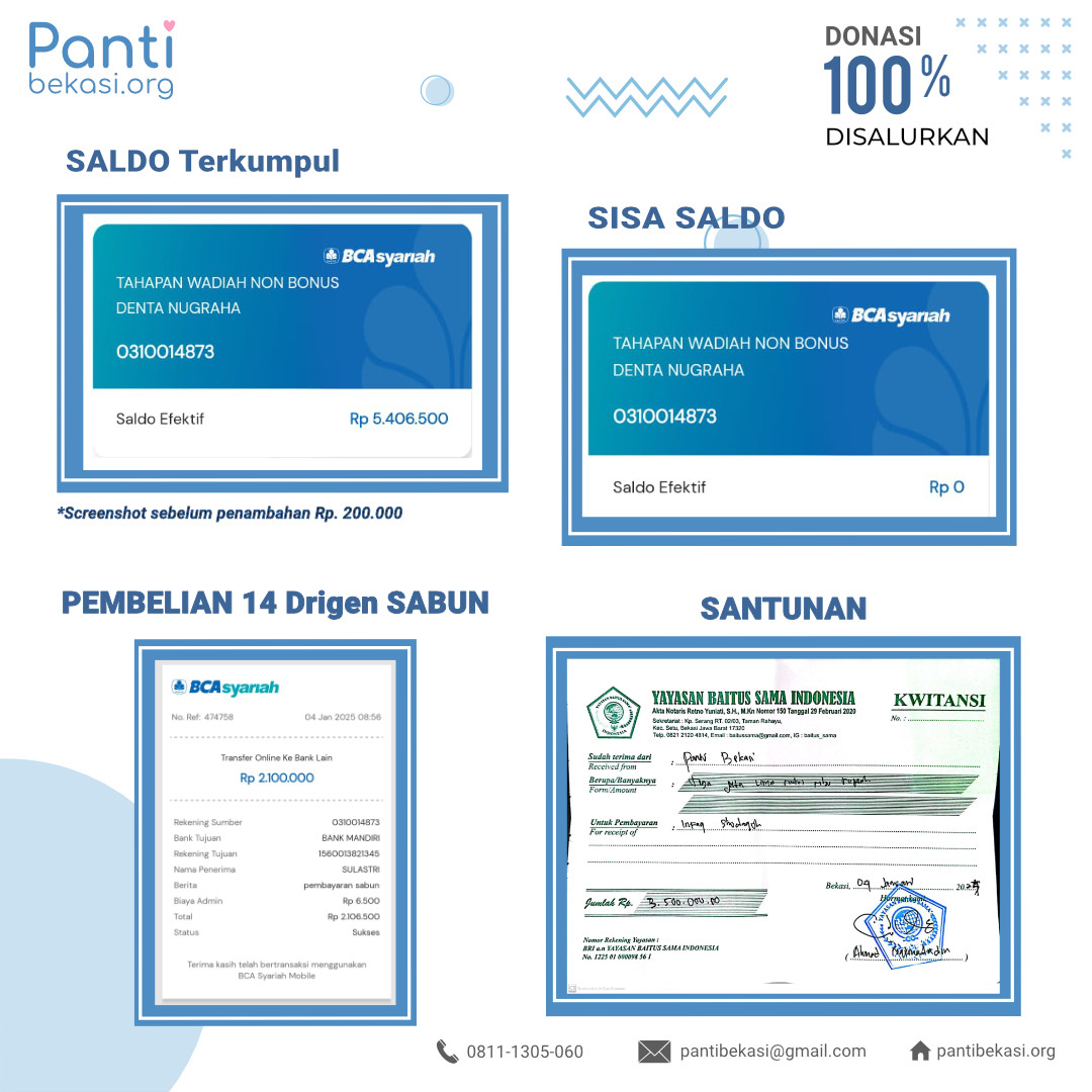Terimakasih kepada seluruh donatur yang telah menyisihkan sebagian rezekinya melalui pantibekasi.org.